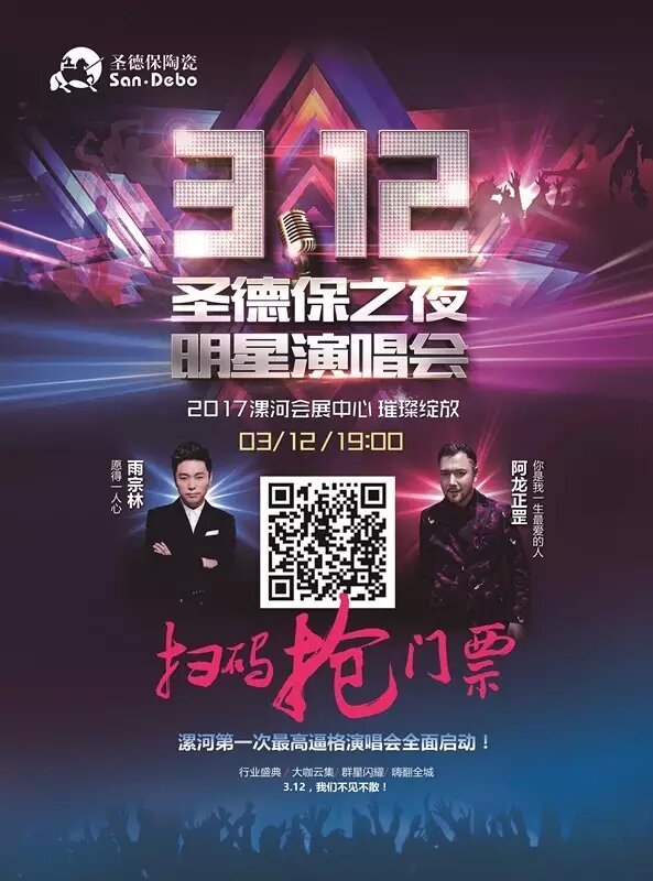 3月12日,圣德保陶瓷即將攜手情歌王子雨宗林、阿龍正罡獻(xiàn)上傾情演唱會(huì),一個(gè)完美的視聽(tīng)盛宴,每一首歌,無(wú)一例外,全都是愛(ài)情的經(jīng)典,漯河的「情歌」迷怎能錯(cuò)過(guò)?漯河會(huì)展中心不見(jiàn)不散!