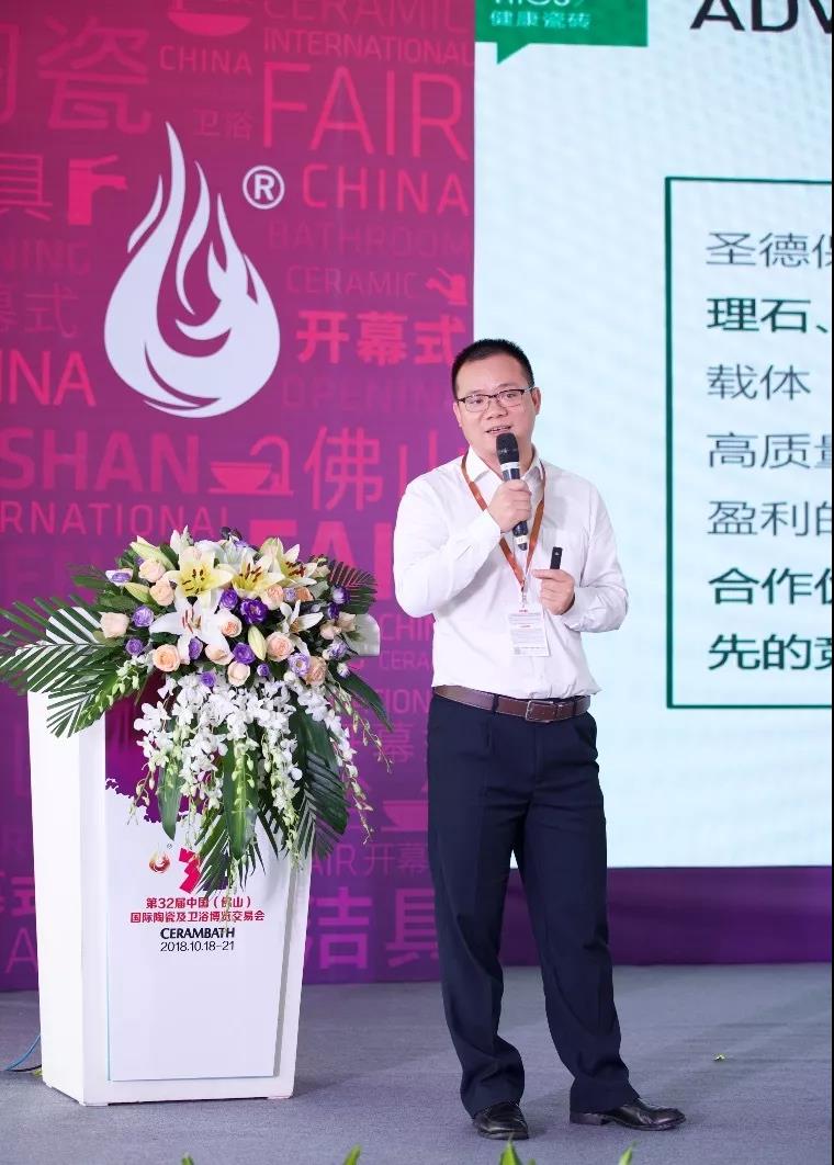 (圣德保陶瓷銷售總經理嚴偉才先生發表演講)