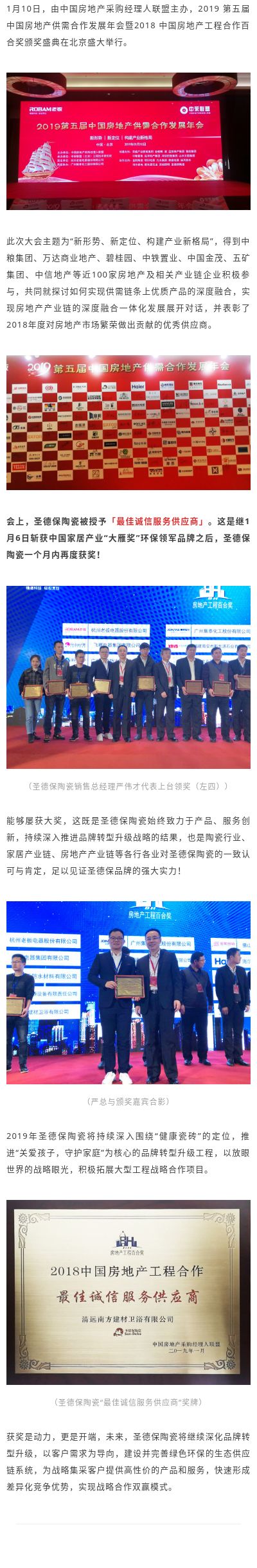 2019開門紅 再度獲獎!圣德保陶瓷被授予「最佳誠信服務供應商」
