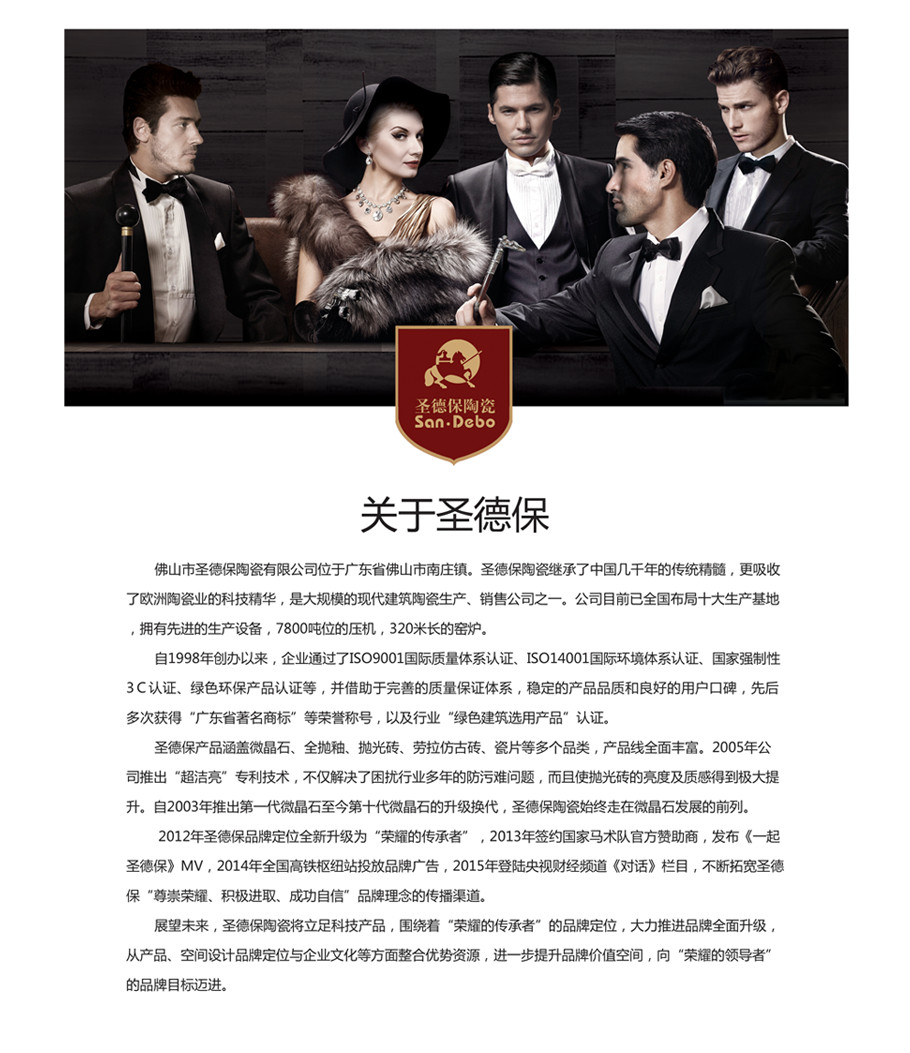 佛山市圣德保陶瓷有限公司位于廣東省佛山市南莊鎮。圣德保陶瓷繼承了中國幾千年的傳統精髓,更吸收了歐洲陶瓷業的科技精華,是大規模的現代建筑陶瓷生產、銷售公司之一。公司目前已全國布局家裝裝修設計生產基地,擁有先進的生產設備,7800噸位的壓機,320米長的窯爐。